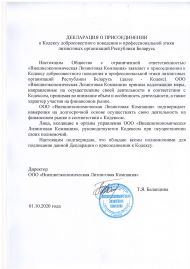 ООО «Внешнеэкономическая Лизинговая Компания» является членом Ассоциации лизингодателей и осуществляет свою деятельность в соответствии с Кодексом добросовестного поведения и профессиональной этики лизинговых организаций Республики Беларусь.